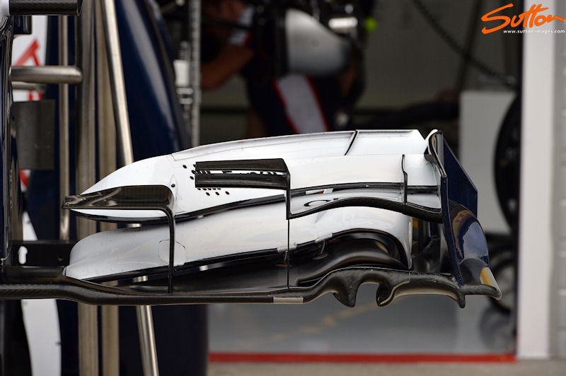 Williams FW35 - The other Front Wing on display is a descendant of the FW34 with the addition of a turning strake added within the main Cascade.